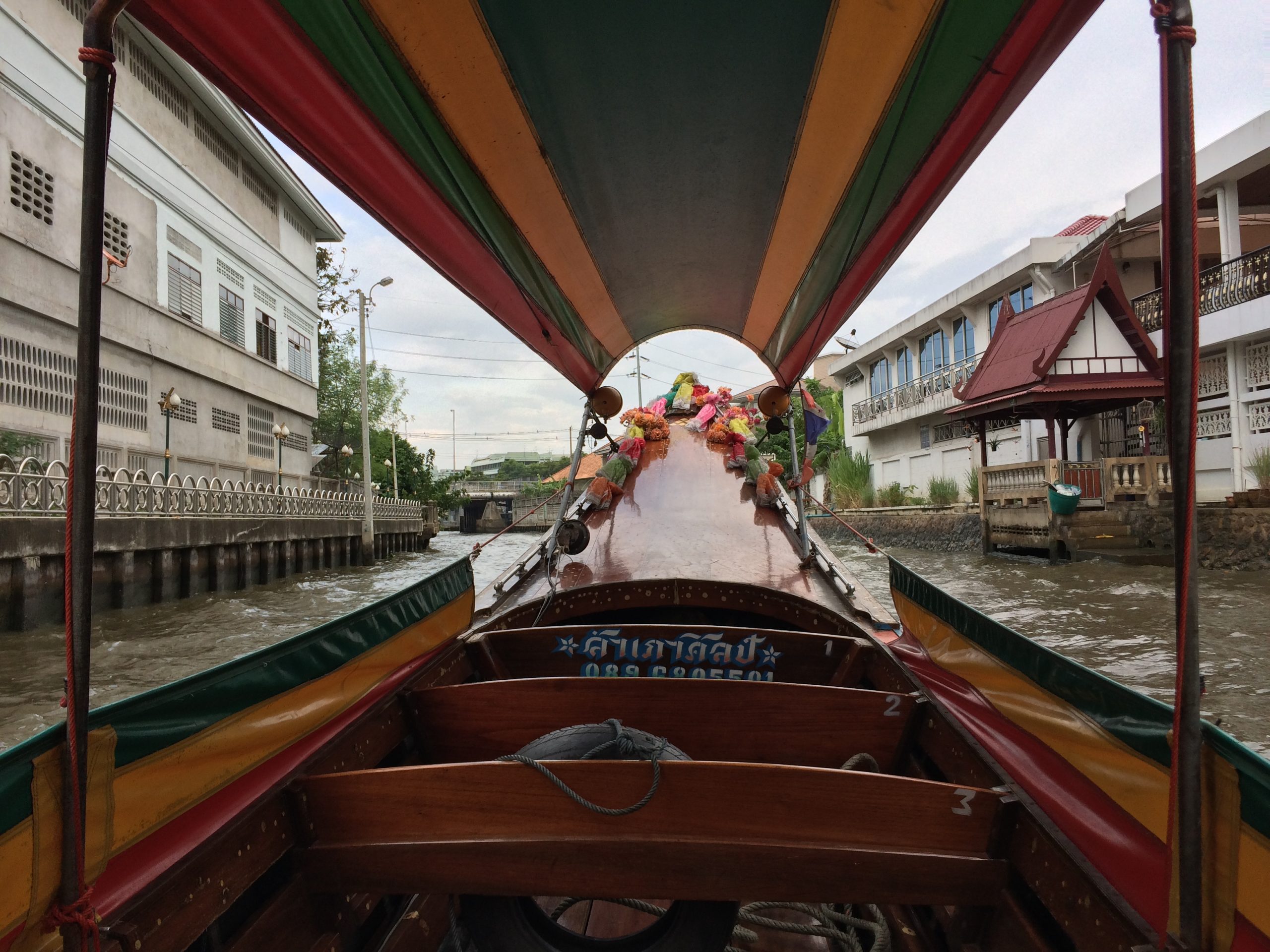 sugeriu um outro passeio para aquele horário que valeria muito a pena que consistia num tour de barco pelo Rio Chao Phraya e os diversos canais que fazem de Bangkok a Veneza do Sudeste Asiático; informou que o passeio passaria por esses canais em que existem construções históricas muito interessantes e puxou um mapa em que mostrava por onde ir pra chegar a um porto pra pegar o tal barco; ainda me aconselhou a pegar um Tuk Tuk até o porto e que o valor da corrida seria XX bahts, mas que eu só pagasse X bahts mediante negociação; da mesma forma eu deveria negociar com o barqueiro pelo passeio e barganhar para metade do valor que o “inocente” garotinho me informou.