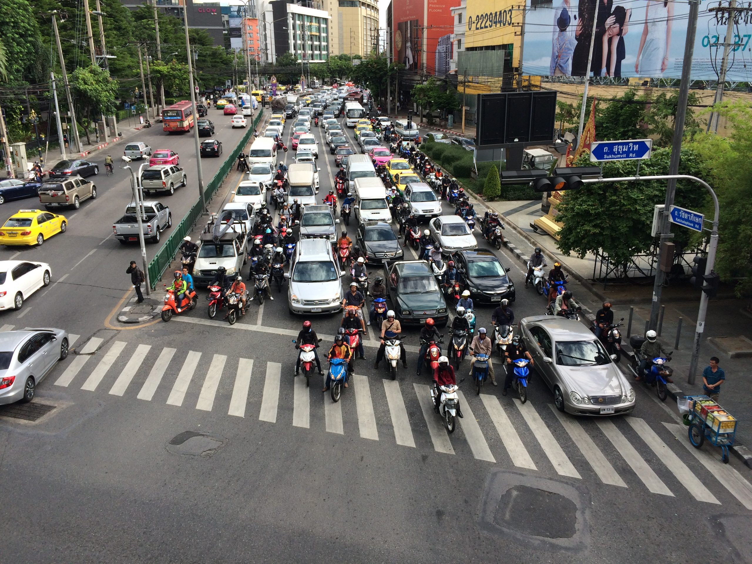 Como faço geralmente isso: vou no booking, ou em qualquer outro site desses que ofereçam essas informações e saio analisando primeiro o mapa da cidade e a localização dos hotéis, que geralmente se concentram nas melhores regiões. Se houver mais de uma região, eu faço uma pesquisa rápida no google pra diferenciar duas ou mais áreas de uma cidade e descobrir qual é a que tem o meu perfil para aquela viagem. Depois disso saio clicando em cada hotel dessa região e comparando eles, seus preços e notas dos hóspedes. Com base nas notas dos hóspedes, ainda, se tiver um tempinho, vou nas notas mais baixas e leio algumas críticas sobre o empreendimento. Se forem críticas aceitáveis, faço a reserva no local, se não forem aceitáveis, procuro outro hotel. Foi assim que cheguei à conclusão de me hospedar na região que circunda a Sukhumvit Road, entre os bairros de Watthana e Din Daeng. É uma área bem servida por metrôs aéreos, shoppings centers, comida de rua e prédios modernos, mas também não é distante da região histórica do centro da cidade onde estão os templos budistas.