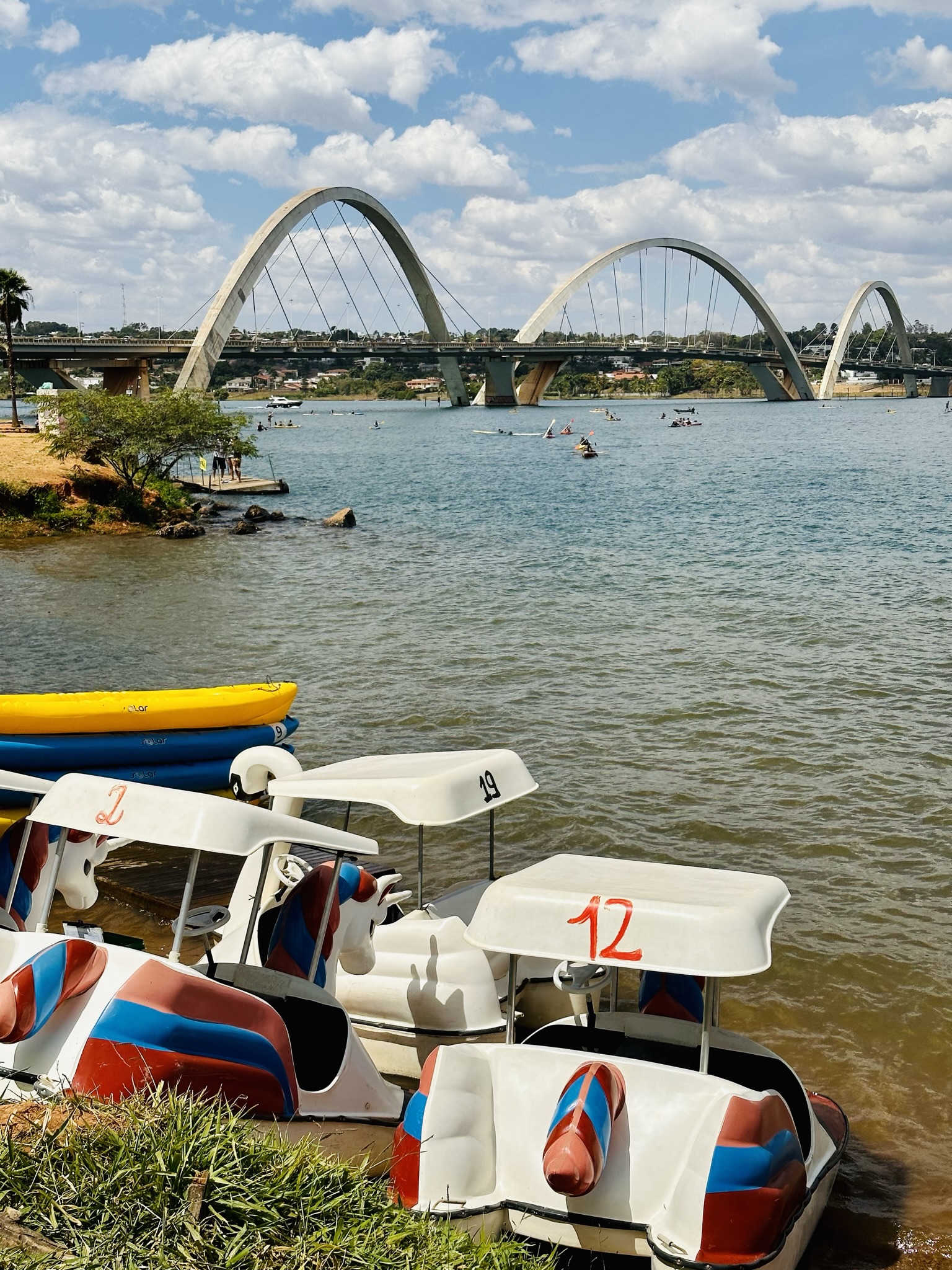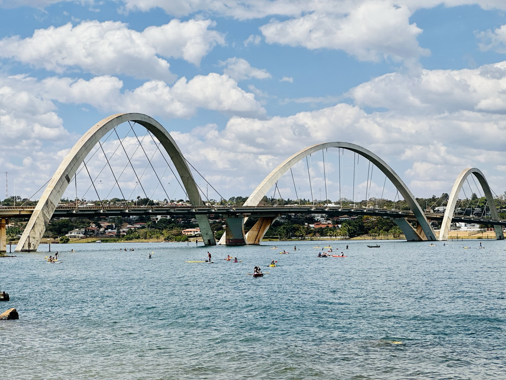Ponte Juscelino Kubitschek: construída em 2002 para melhorar o fluxo viário da cidade, que acabou se desenvolvendo e crescendo bastante para o leste, a paisagem do lago Paranoá foi modificada pelos três bonitos arcos dessa ponte, que, nos finais de semana, é local de lazer dos moradores que desejam praticar esportes náuticos e se refrescar em suas águas. Detalhe: ela não foi desenhada pelo arquiteto Oscar Niemeyer, como alguns podem pensar, e sim pelo arquiteto Alexandre Chan e pelo engenheiro Mário Vila Verde. Nos finais de semana, muitos ciclistas também a atravessam para contemplar a imensidão do lago e o entorno da cidade (eis um passeio porreta).