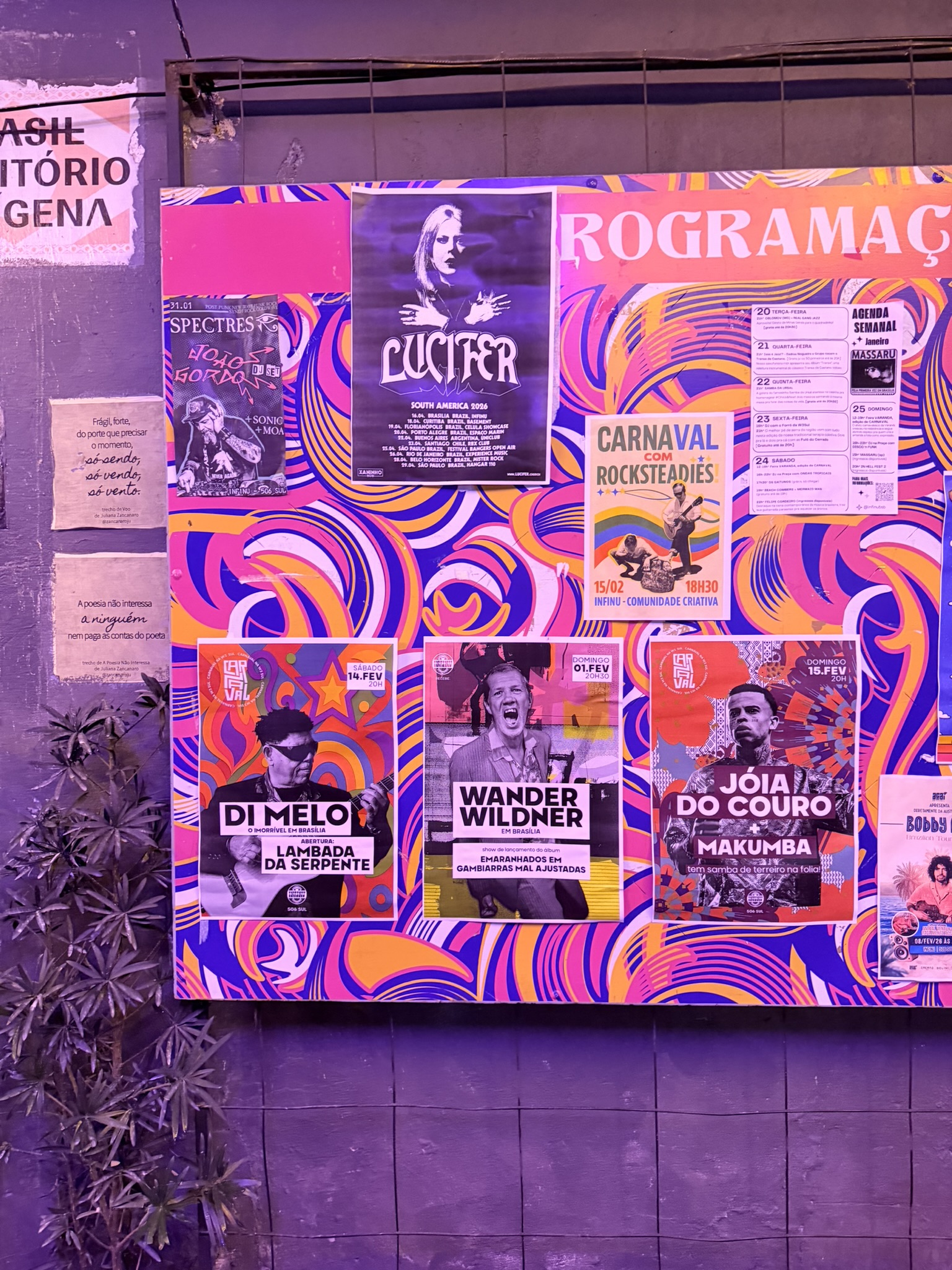 Outra curiosidade do DF é que era um grande descampado com fazendas e os moradores do início da cidade não são nascidos aqui. O povo daqui tem um senso grande de pertencimento e ama sua terra como em outros estados do país. Mas geralmente também veneram muito a cultura importada de todo o resto do Brasil pra cá. Ponto pra eles novamente! O brasiliense pode ser incrível (se bem educado), ou um “fofa-bosta” (se for mal-educado), como em todo lugar que se preze. Mas todos eles têm um conhecimento básico de cultura nordestina, sobretudo, mas também sudestina, sulista e nortista (nem se fale de centro-oestina). Sobretudo nordestina porque metade de sua população basicamente veio destes estados para literalmente construir a cidade, dando o seu suor e a vida por isso.